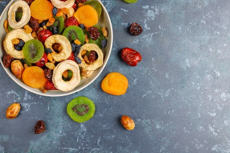3.الفواكه الطازجة والمجففة: وننصحك بالابتعاد قدر الإمكان عن الفواكه المعلبة لاحتوائها على السكر المضاف.