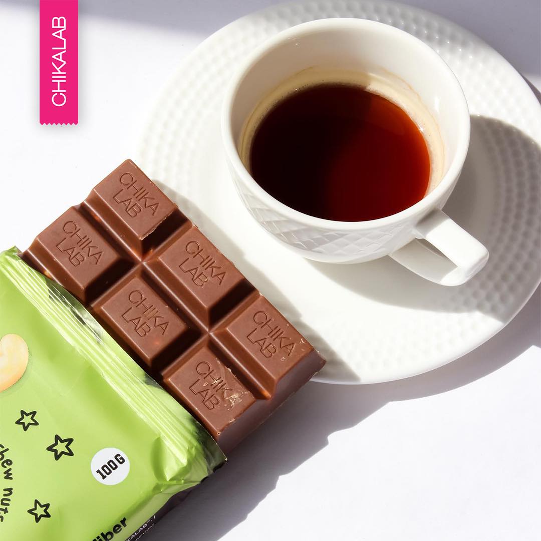 4.الشوكولاته: ونرشح لك من متجر دوفمبر شيكا لاب شوكولاته بروتين بار بالحليب والكاجو خصوصا وأنها خالية من السكر وغنية بالبروتين.